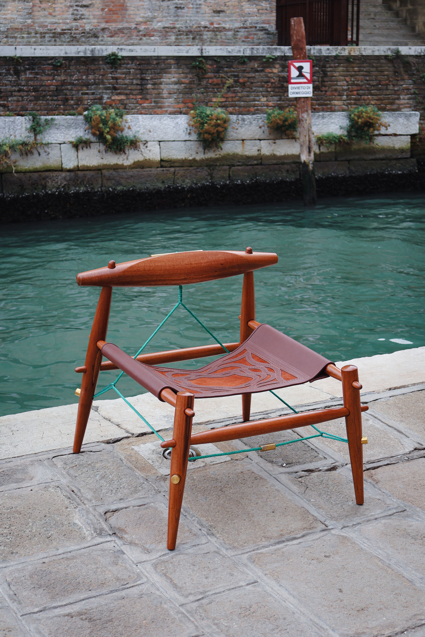Inspired by the structure of the jangada, a traditional fishing sailboat, the Care Armchair was developed from a structural system of wooden fittings and stretched rope. This piece is part of a limited edition, resulting from a collaboration between designer Leo Ferreiro and artisan Andre Cardoso. Awarded by the Museu da Casa Brasileira, the Brasil Design Award and the Milan Design Fair
