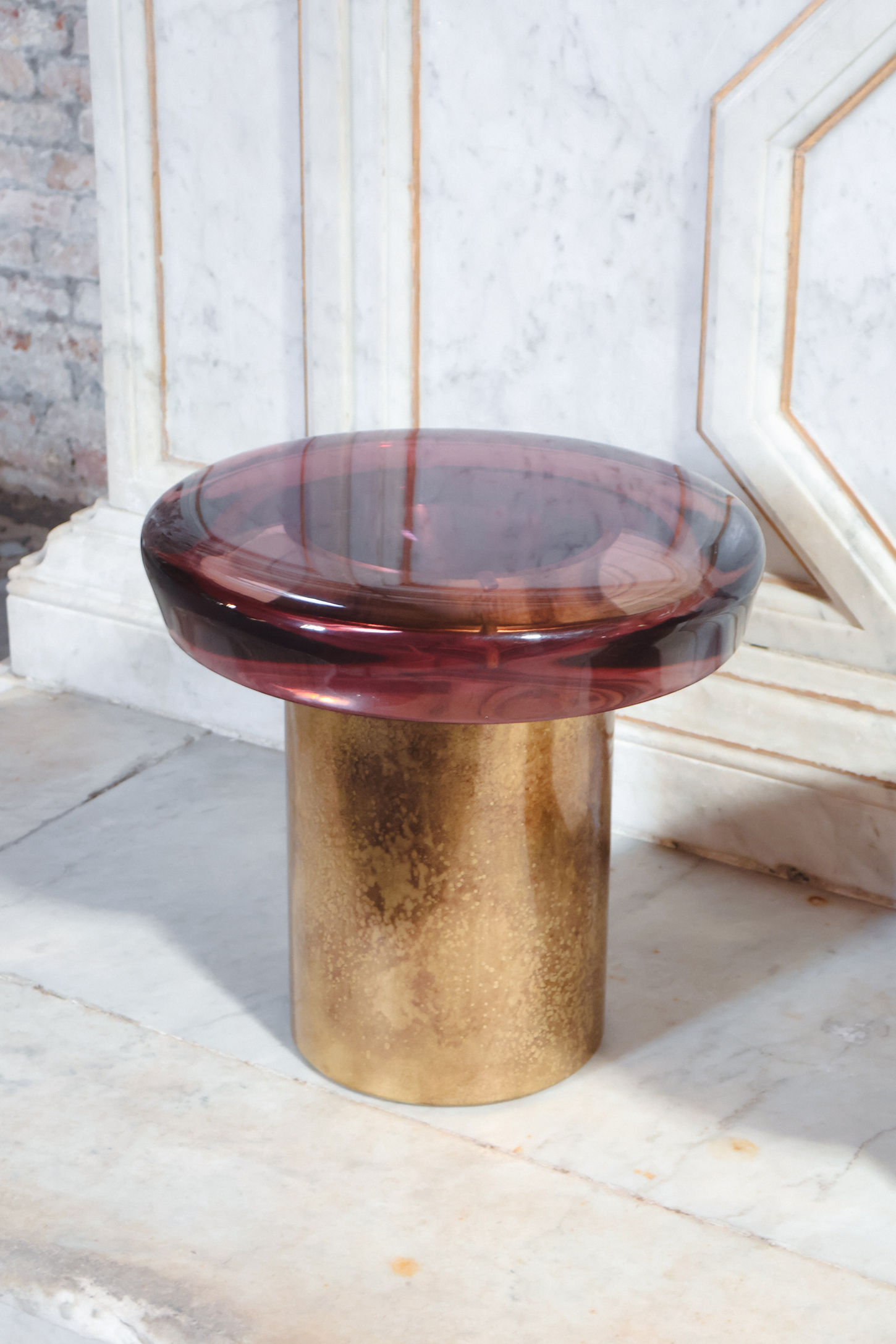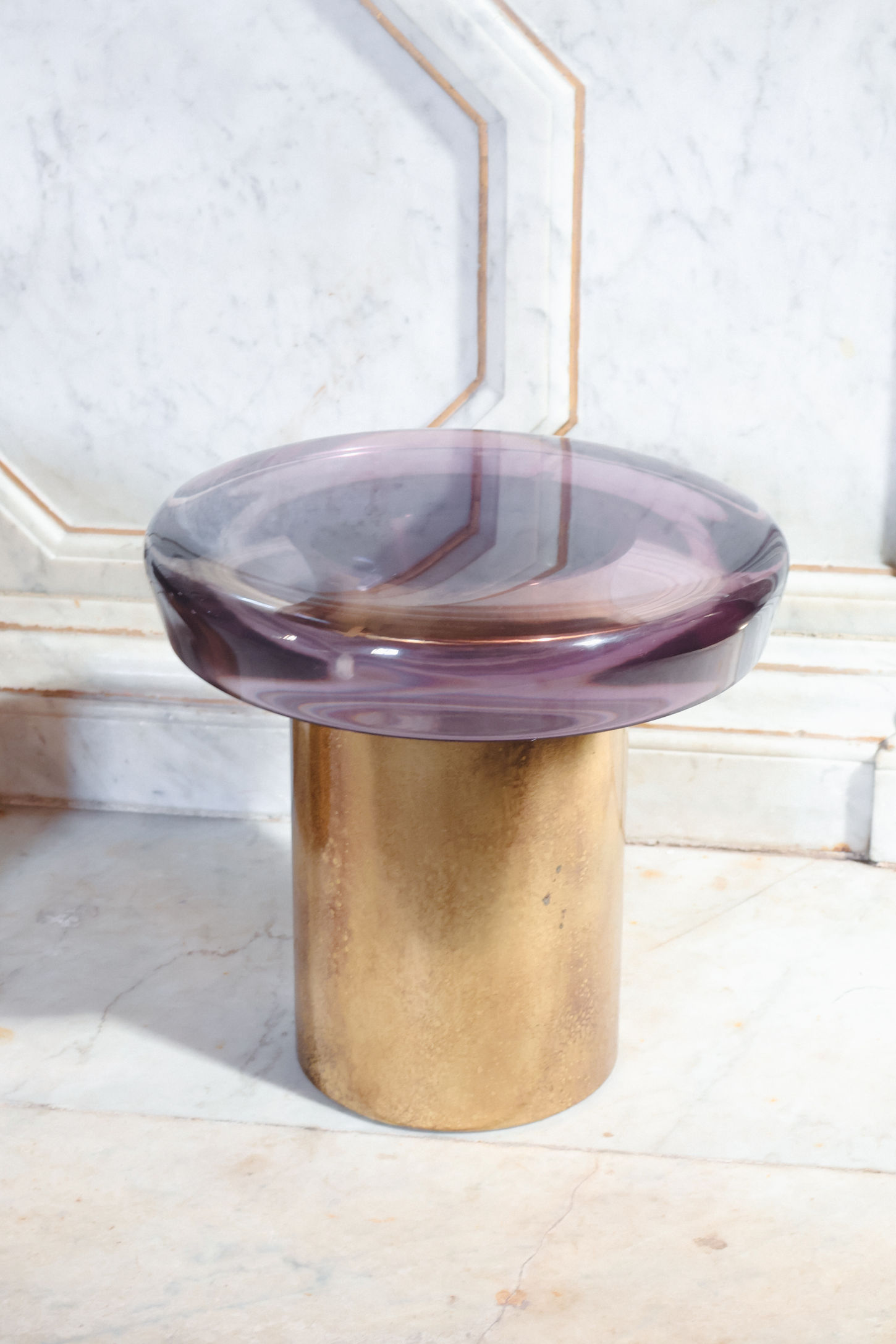 Top in cast resin, base in etched brass, available in different colors